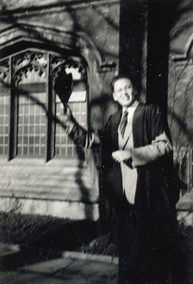 | He waves his cap after getting an MBA from Chicago in 1949. He was awarded a PhD in economics shortly afterwards. When he stopped studying, however, he lost his student visa and became really worried. |
