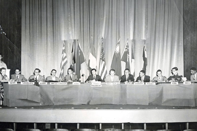 | To lighten his Army duties, he suggested running a mock-U.N. session. Here he is taking the role of Red China (no one else wanted it!) |