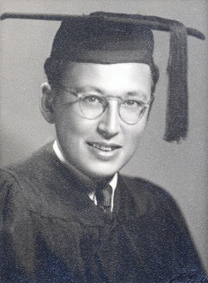 | He had to bike one hour each way to attend St. John’s University in another part of Shanghai. The students were mostly Chinese, but the courses were given in English. Joe also studied Chinese in another school. Despite this double load, he graduated from St. John’s at the age of 19. Here is his graduation picture. |